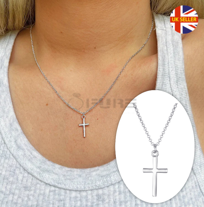 Women Chain Necklace Silver Plated Holy Cross Pendant Crucifix Jesus UK Jewelry