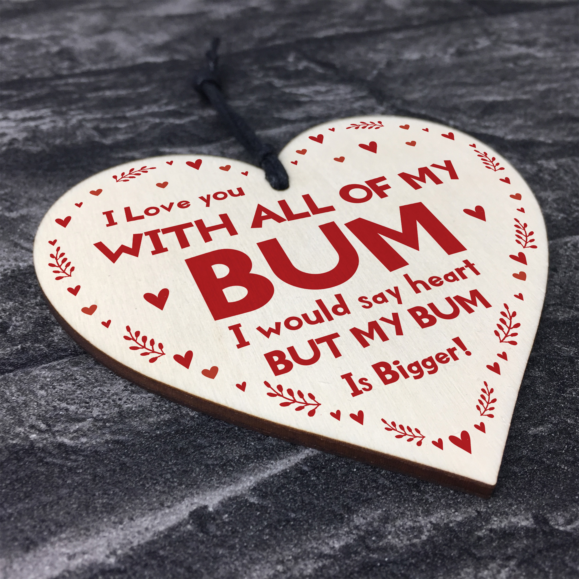 The sign is made from high quality, and the design is permanently printed into the heart. The wooden heart is supplied with waxed cotton rope in both black and red colours to allow easy hanging and looks great in any room of the house.
