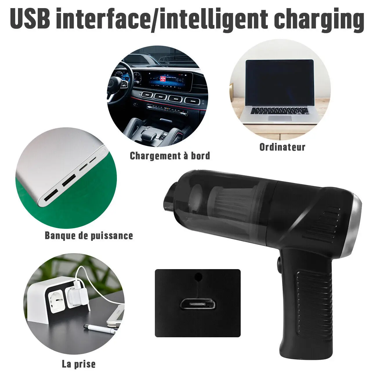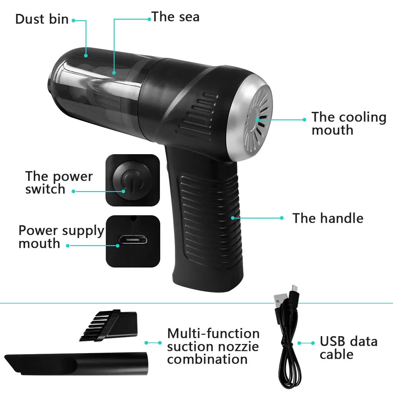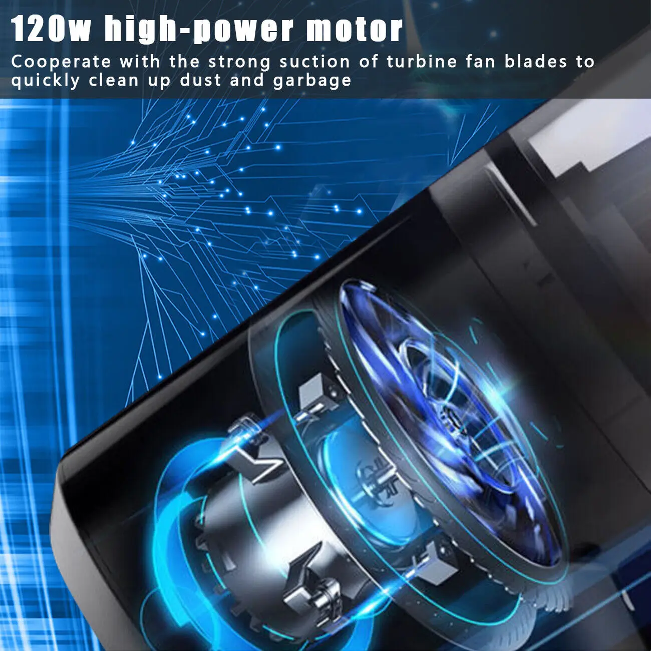 1. 6000PA Powerful Suction—The cordless handheld vacuum uses a 120W high-power motor, up to 30,000 revolutions per minute.