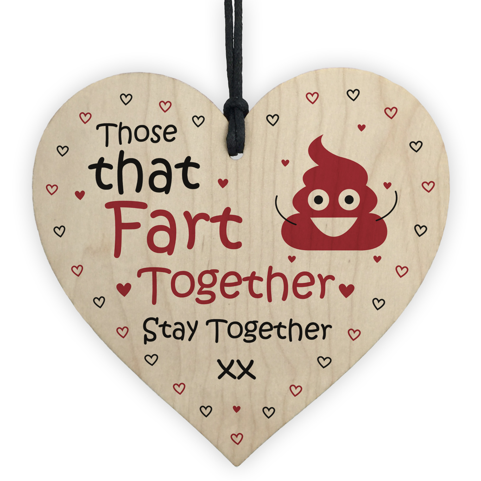 The sign is made from high quality, and the design is permanently printed into the heart. The wooden heart is supplied with waxed cotton rope in both black and red colours to allow easy hanging and looks great in any room of the house. Features