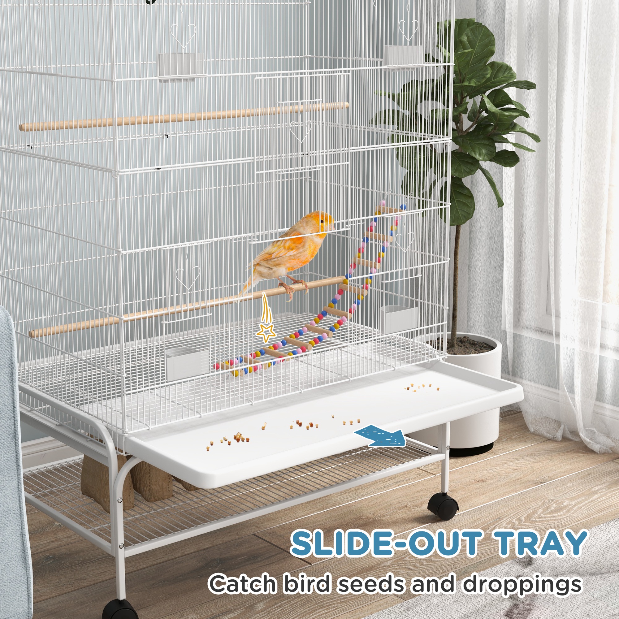 Treat your birds to a spacious and cosy PawHut flight cage. With plenty of room to spread their wings, different perches, toys, ladders and platforms, it's the perfect home. There are multiple doors and containers for food and water, so catering to your pets is easy. They'll live in a tidy space, thanks to the removable tray making cleaning effortless. Plus, with four wheels and two brakes, it's mobile and stable for extra convenience and safety.